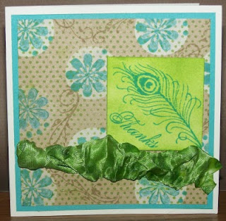 August blog is featuring background stamping. For my post, I took pattern paper and altered it with stamps to make my own paper. This is great for when you have paper that really doesn't work, you can make it work.